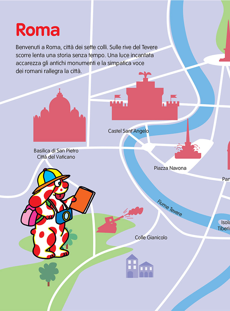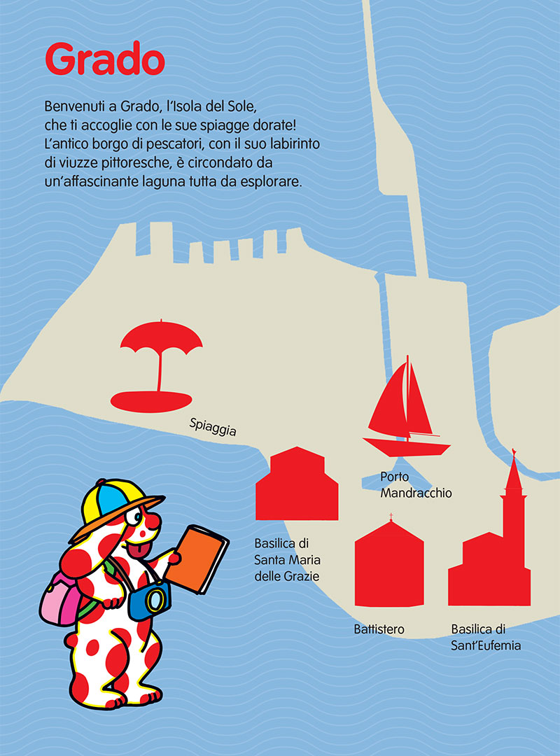 per scoprire i luoghi più belli d'Italia con Pimpa e i suoi amici.